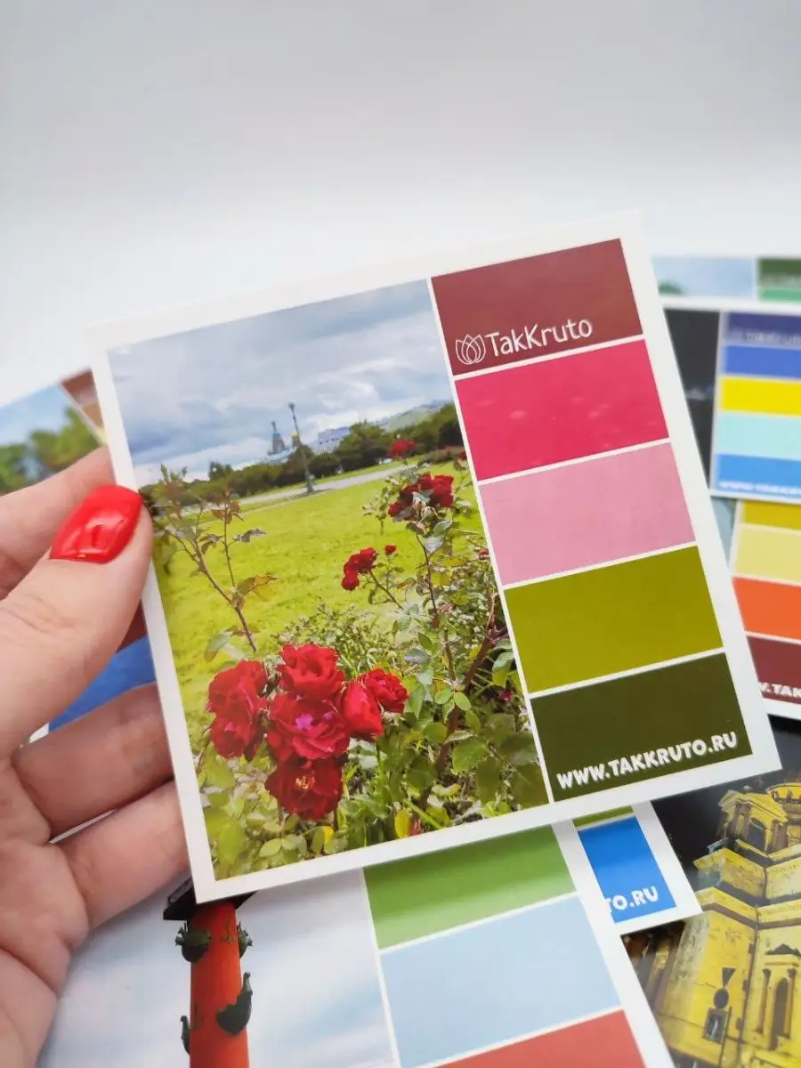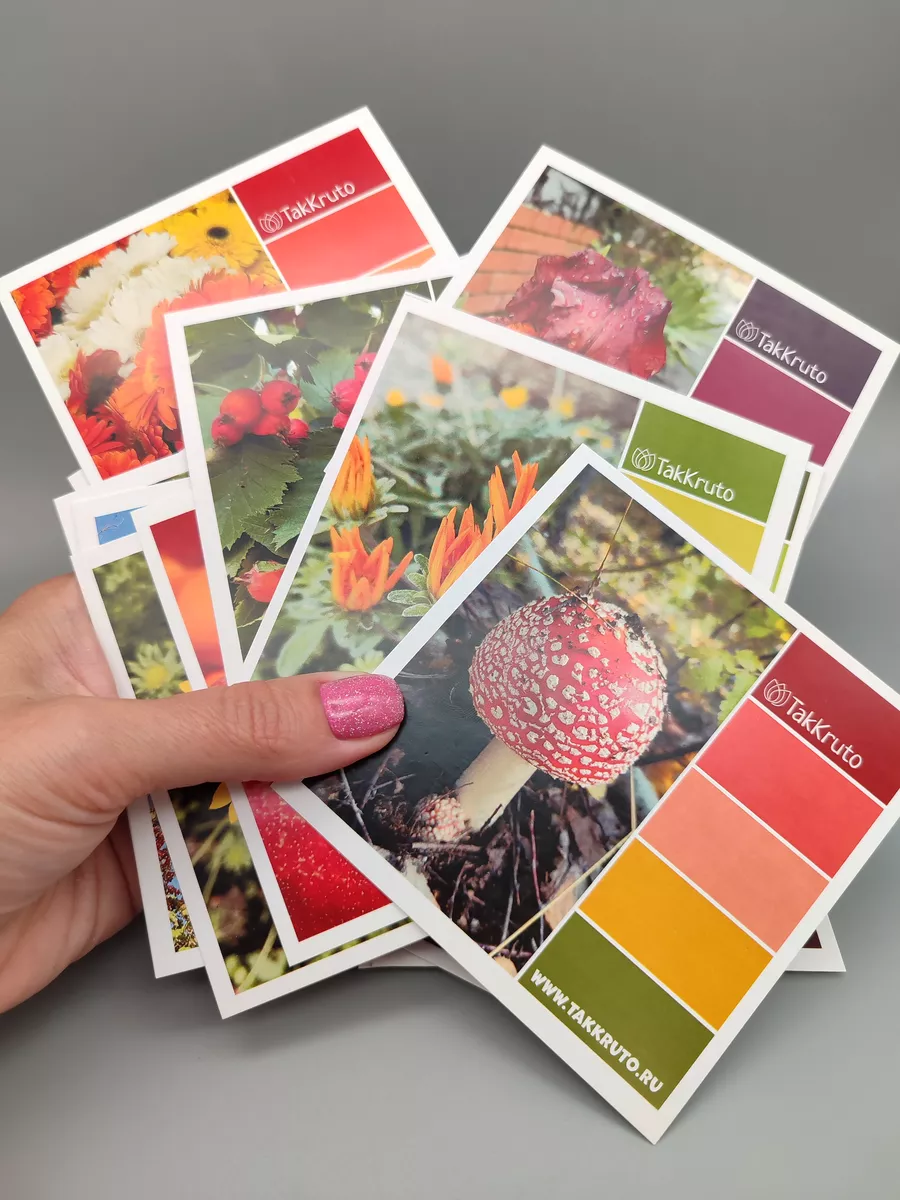 Оригинальные открытки-карточки с различными фотографиями и цветовыми палитрами в...