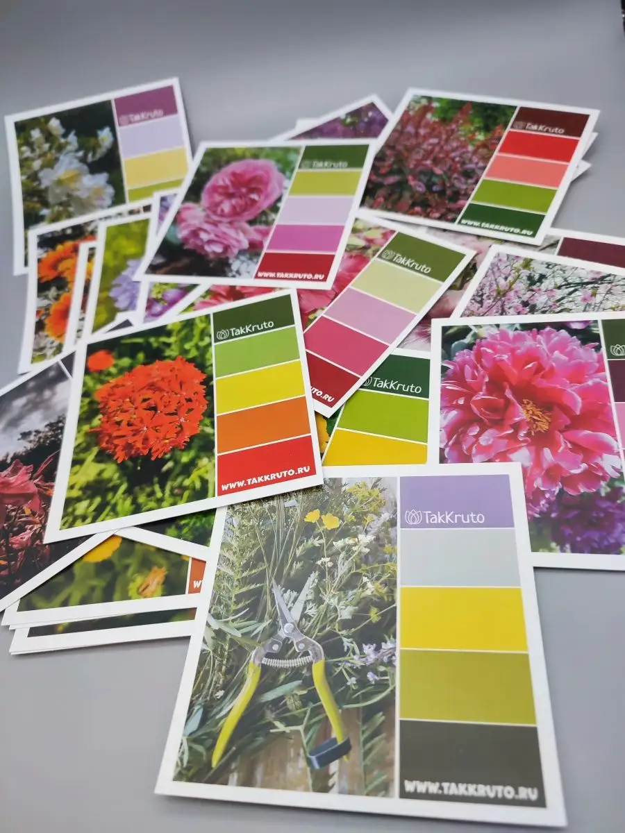 Оригинальные открытки-карточки с различными цветами и цветовыми палитрами для вашего творчества. Можно использовать, как практический материал для выбора цветовой гаммы, как подарок творческому человеку, либо украсить ими свой интерьер или доску желаний. В комплекте 36 разных открыток размером 10*10 см, плотный гладкий картон, высокое типографское качество печати, яркие цвета. Упакованы в плотный прозрачный пакет для хранения и картонную коробочку.