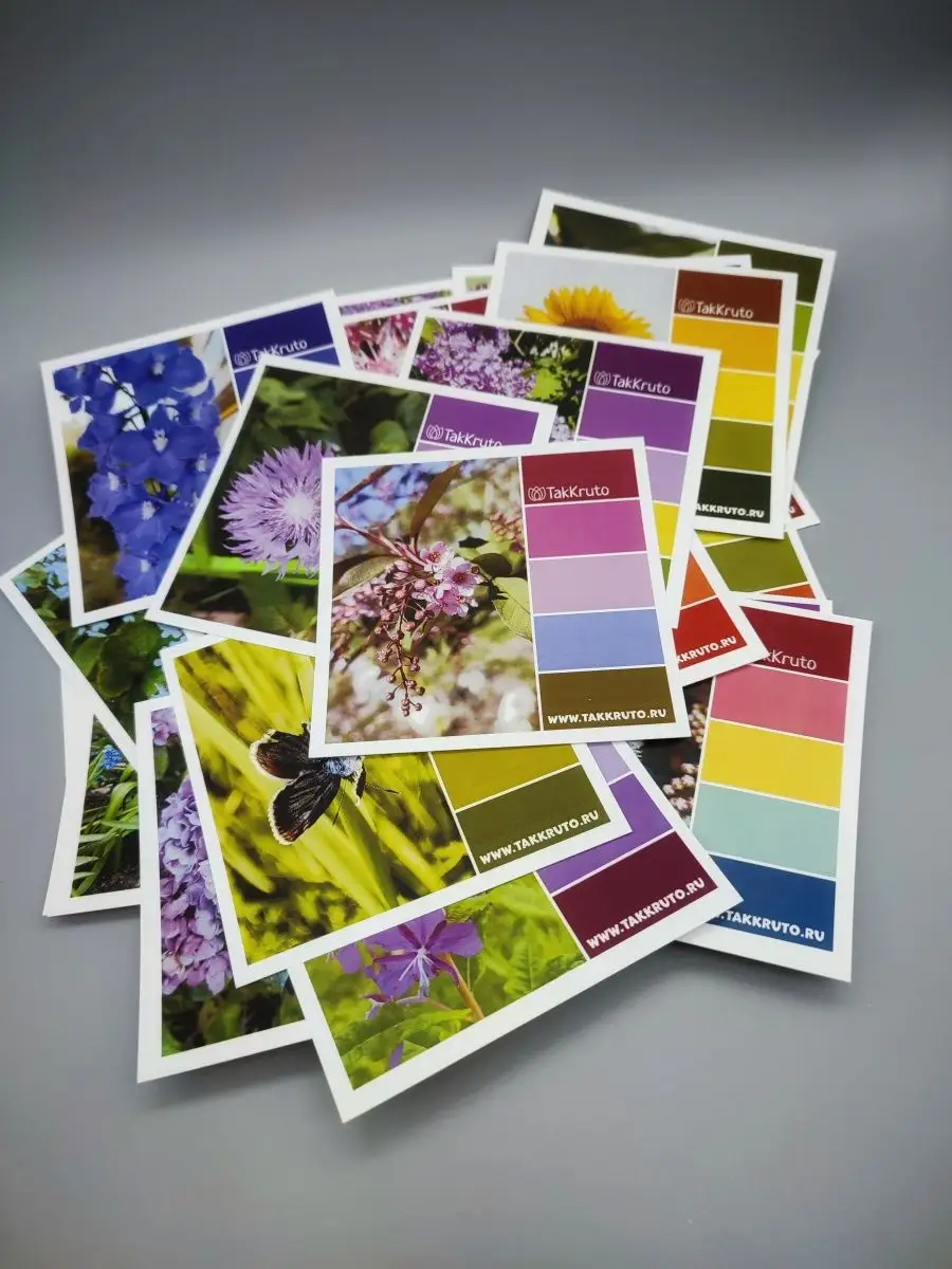 Оригинальные открытки-карточки с различными цветами и цветовыми палитрами для вашего творчества. Можно использовать, как практический материал для выбора цветовой гаммы, как подарок творческому человеку, либо украсить ими свой интерьер или доску желаний. В комплекте 36 разных открыток размером 10*10 см, плотный гладкий картон, высокое типографское качество печати, яркие цвета. Упакованы в плотный прозрачный пакет для хранения и картонную коробочку.