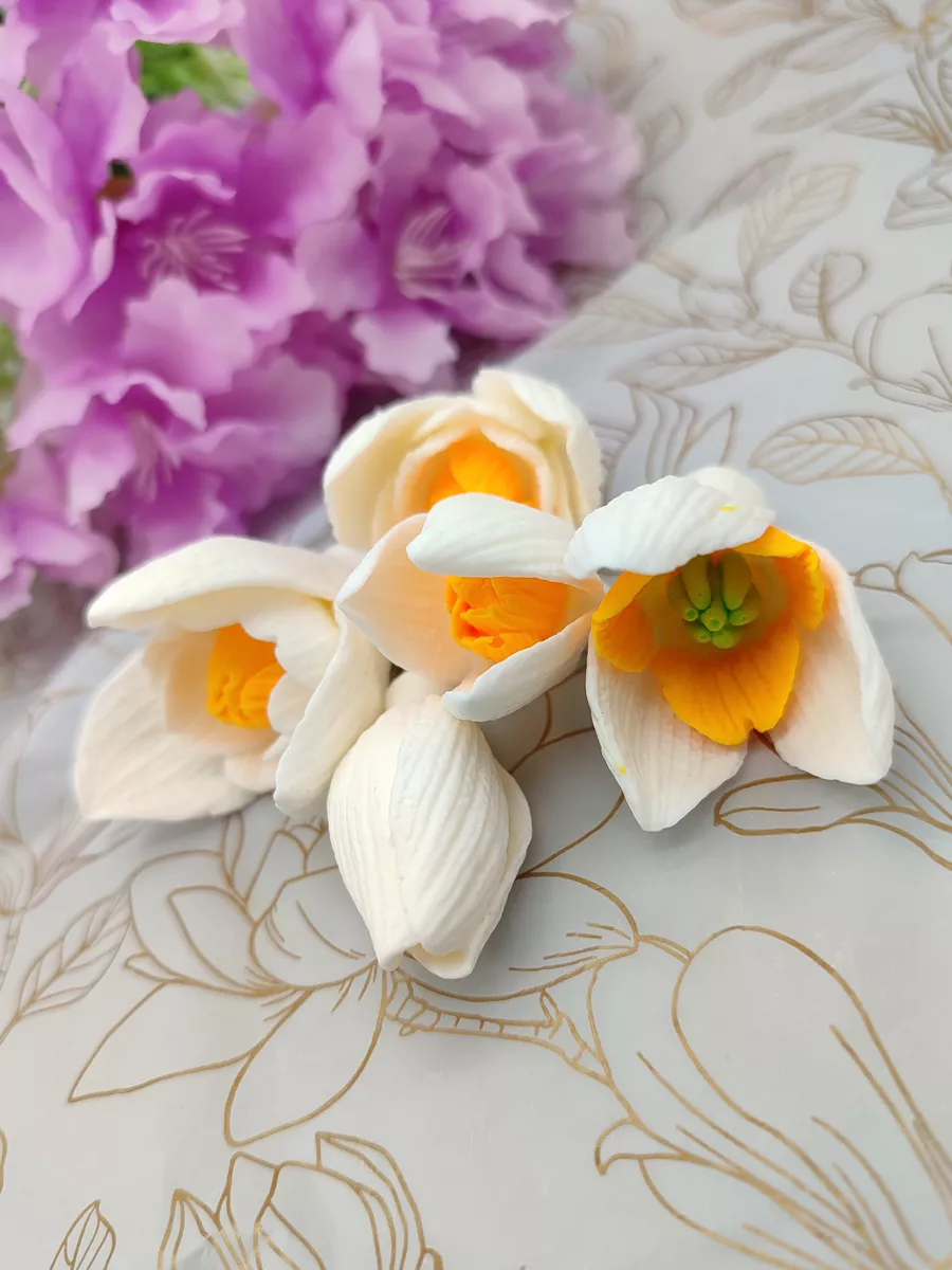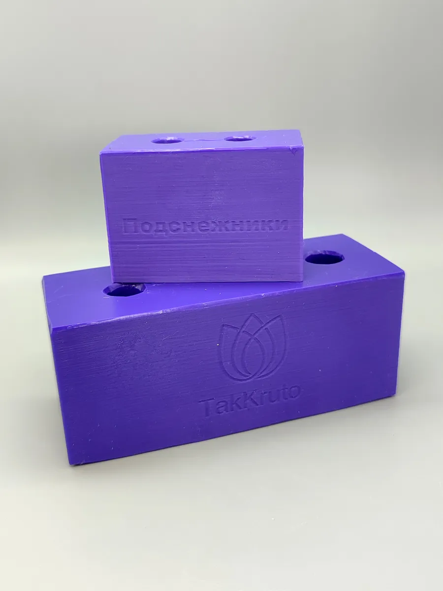 Силиконовые формы для мыла TakKruto - это всегда высокое качество товаров для вашего творчества!Силиконовые формы для мыла Большой комплект подснежников. Вес в мыле от 10 до 20 грамм, высота мыла от 43 до 50 мм, диаметр от 22 до 37 мм. Цвет и высота форм могут незначительно отличаться от указанных в описании и на фотографиях. Внутри форм возможно наличие белого воскового налета, который не влияет на качество изделия. В комплект входит пакет для хранения и резинки для скрепления разрезов. На формах имеются технологические разрезц для более удобного извлечения мыла из форм. В комплекте 2 формы: на одной два бутона, на второй три цветка побольше.