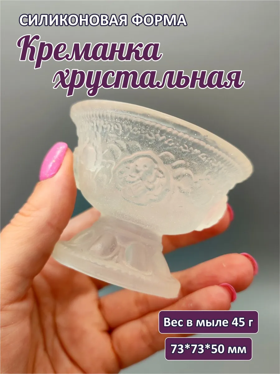 Силиконовая форма для мыла и свечей Креманка хрестальная от бренда TakKruto (ТакКруто). Размеры готового мыла ~73*73*50 мм, вес в мыле: ~45 г. Мы производим формы из высококачественного гибкого силикона, устойчивого к высоким и низким температурам. С нашими силиконовыми молдами удобно работать даже новичку. Формы для мыла и свечей прекрасно переносят тысячи заливок и будут служить вам несколько лет. Также многие формы бренда ТакКруто подходят для заливки гипсом и эпоксидной смолой. С помощью силиконовых молдов вы можете создавать прекрасные handmade-изделия и подарки своими руками. На форме могут быть технологические разрезы для более удобного извлечения мыла. Внутри формы в редких случаях возможно наличие белого воскового налета, который не влияет на качество изделия. В комплект входит пакет для хранения.