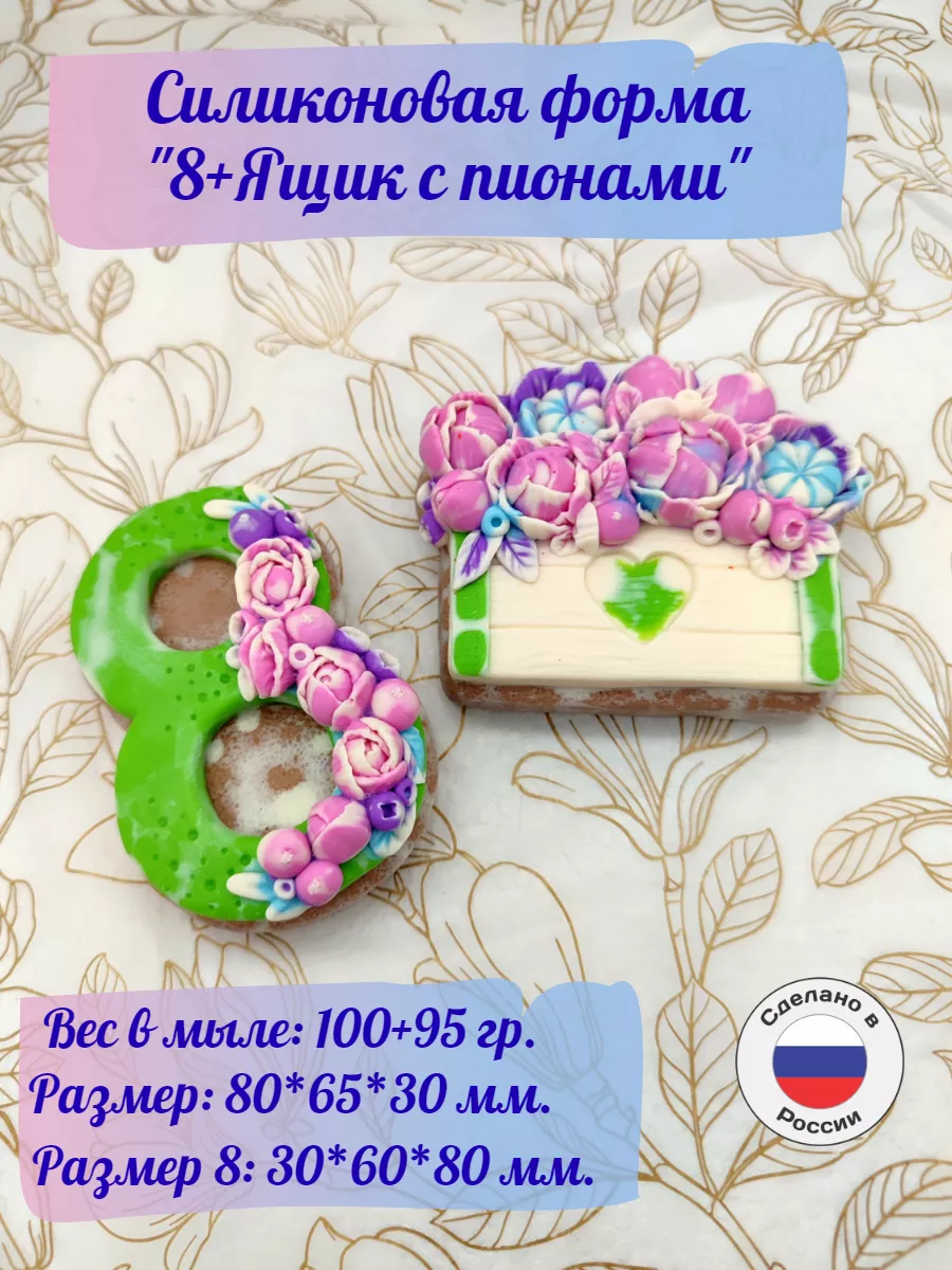 Силиконовые формы для мыла и свечей 8 Марта и Ящик с пионами 2d от бренда TakKruto (ТакКруто). Мы производим формы из высококачественного гибкого силикона, устойчивого к высоким и низким температурам. С нашими силиконовыми молдами удобно работать даже новичку. Формы для мыла и свечей прекрасно переносят тысячи заливок и будут служить вам несколько лет. Также многие формы бренда ТакКруто подходят для заливки гипсом и эпоксидной смолой. С помощью силиконовых молдов вы можете создавать прекрасные handmade-изделия и подарки своими руками. На форме могут быть технологические разрезы для более удобного извлечения мыла. Внутри формы в редких случаях возможно наличие белого воскового налета, который не влияет на качество изделия. В комплект входит пакет для хранения.
