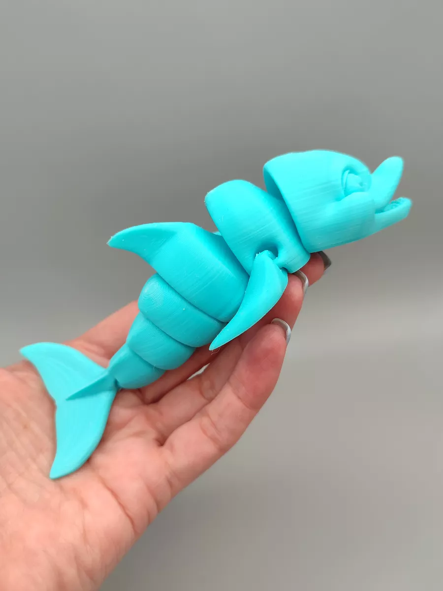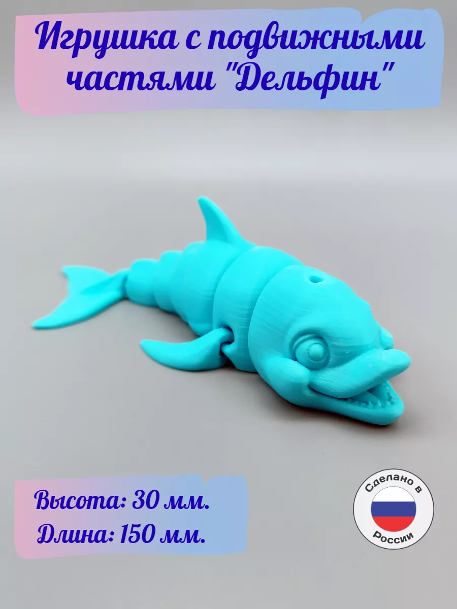 Весёлая 3д-игрушка Дельфин с подвижными частями от бренда TakKruto Gifts порадует как взрослых, так и детей. Высота Дельфинчика ~30 мм, длина ~150 мм. Игрушка Дельфин неразборная, детали не отделяются друг от друга. Дельфинчик напечатан на 3д-принтере, материал - PET-G пластик (пластик не токсичный, подобный пластик используется для производства бутылок для напитков). При желании вы можете раскрасить игрушку акриловыми красками.