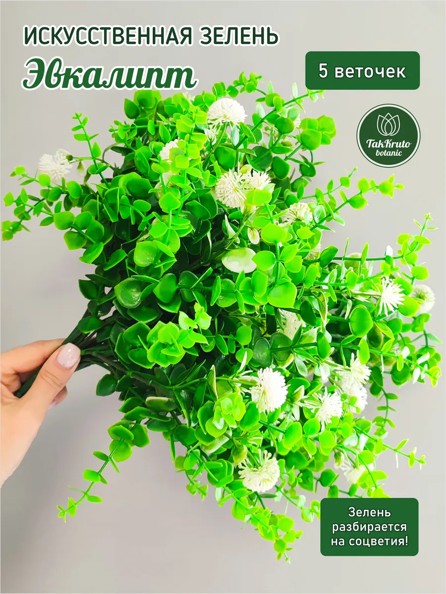 Искусственная зелень Эвкалипт №1 с белыми цветочками от бренда TakKruto Botanic ...
