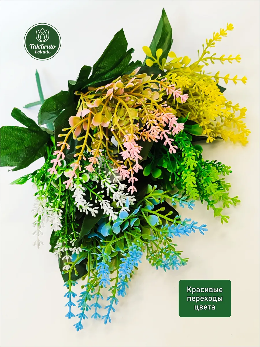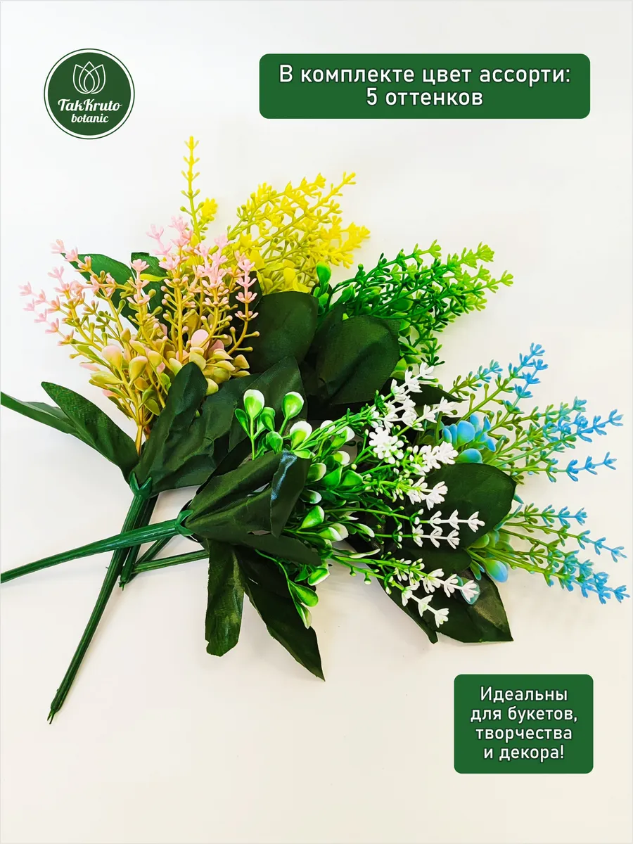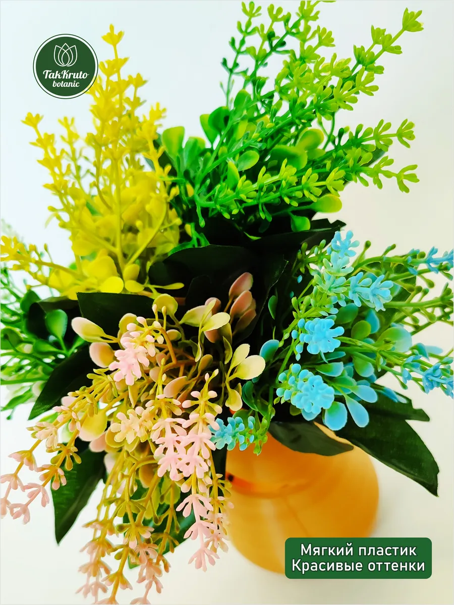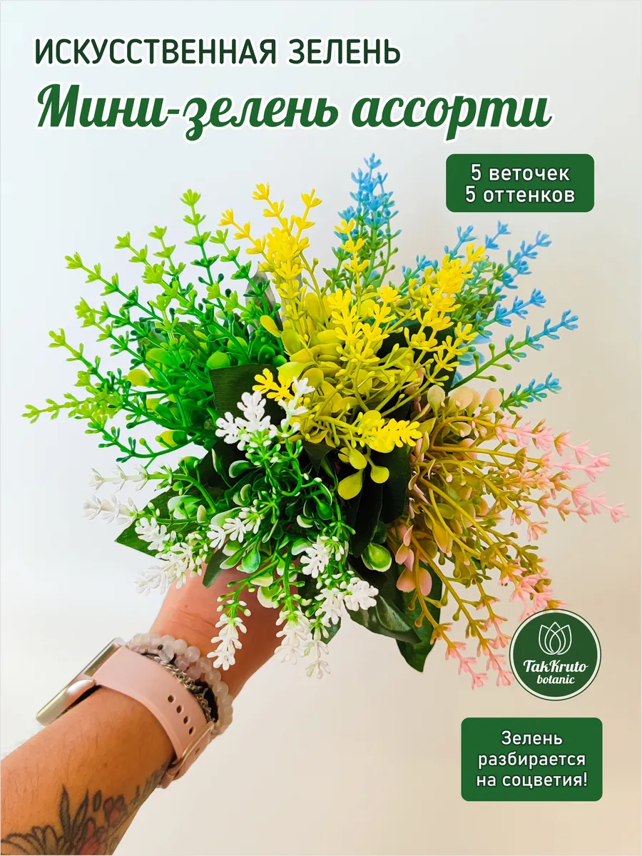 Искусственная зелень Мини-травка цвет-ассорти от бренда TakKruto Botanic выполнена из качественного пластика и выглядит крайне реалистично. Декоративные искусственные ветки подходят для любого интерьера, выглядят, как настоящие живые, эти искусственные растения не требуют полива и особого ухода, сохраняют достойный внешний вид в течение долгого времени. Красивые интерьерные веточки можно собирать в большие букеты, эти эстетичные изделия подойдут для кухни, зала, их размещают на подоконнике, тумбочке или полке. Искусственная зелень идеально подходит для флористических композиций, творческих букетов из мыла, фоамирана, лент, бумаги, сухоцветов, сладостей, конфет. Наши искусственные растения используются для декора свадьбы, дня рождения, для создания цветочных арок, настенных, настольных и напольных композиций для декора. Эти пластиковые веточки можно собирать в большие букеты, ставить их в вазы и кашпо, украшать свой дом, гостиную, веранду, спальню. В комплекте 5 веточек длиной 22 см, все веточки разного цвета, как на фото.