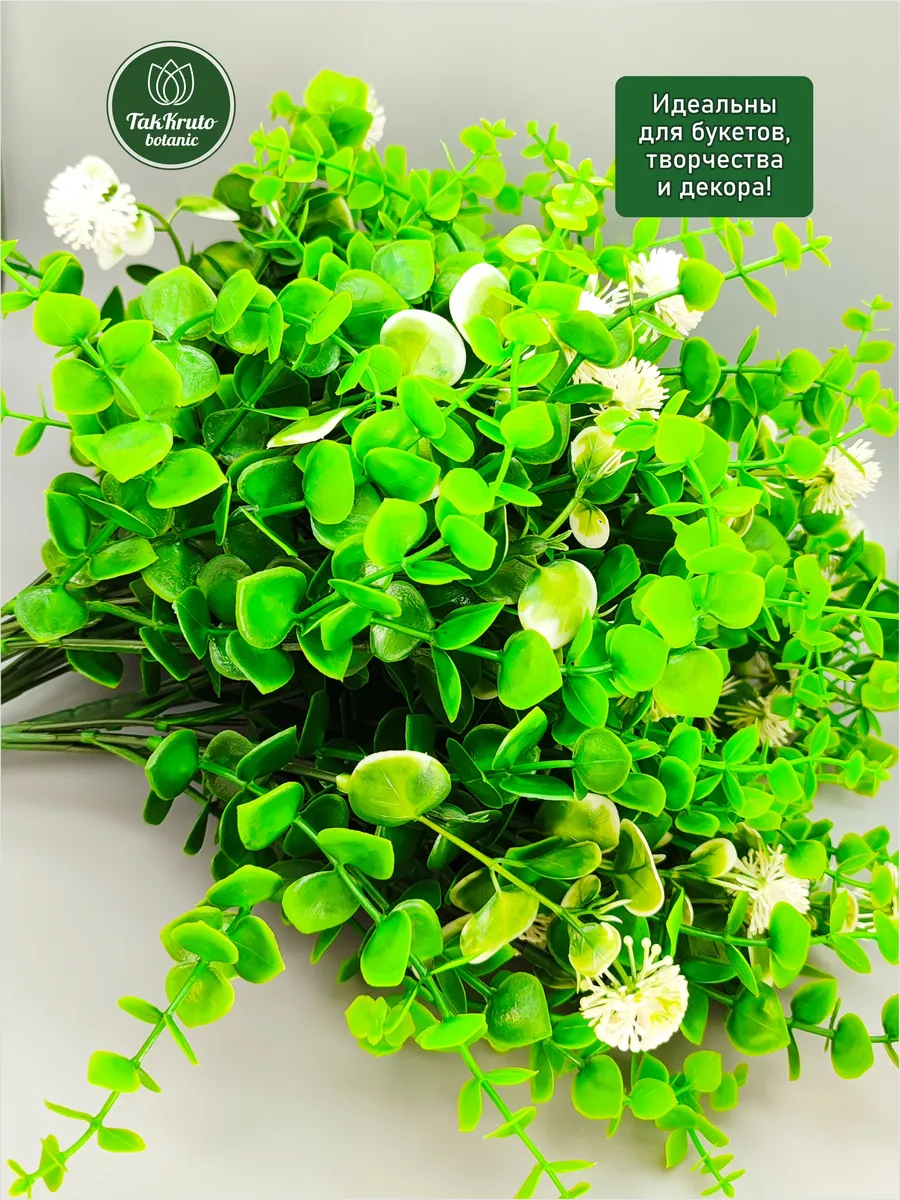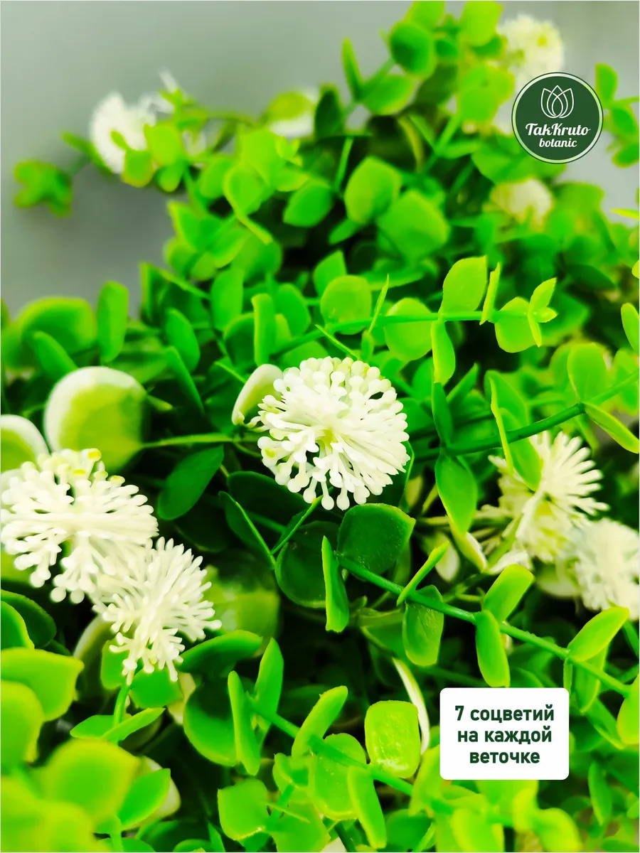 Искусственная зелень Эвкалипт №1 с белыми цветочками от бренда TakKruto Botanic выполнена из качественного пластика и выглядит крайне реалистично. Декоративные искусственные ветки подходят для любого интерьера, выглядят, как настоящие живые, эти искусственные растения не требуют полива и особого ухода, сохраняют достойный внешний вид в течение долгого времени. Красивые интерьерные веточки можно собирать в большие букеты, эти эстетичные изделия подойдут для кухни, зала, их размещают на подоконнике, тумбочке или полке. Искусственная зелень идеально подходит для флористических композиций, творческих букетов из мыла, фоамирана, лент, бумаги, сухоцветов, сладостей, конфет. Наши искусственные растения используются для декора свадьбы, дня рождения, для создания цветочных арок, настенных, настольных и напольных композиций для декора. Эти пластиковые веточки можно собирать в большие букеты, ставить их в вазы и кашпо, украшать свой дом, гостиную, веранду, спальню. В комплекте 5 веточек длиной 35 см, все веточки зелёные с белыми пушистыми цветочками.