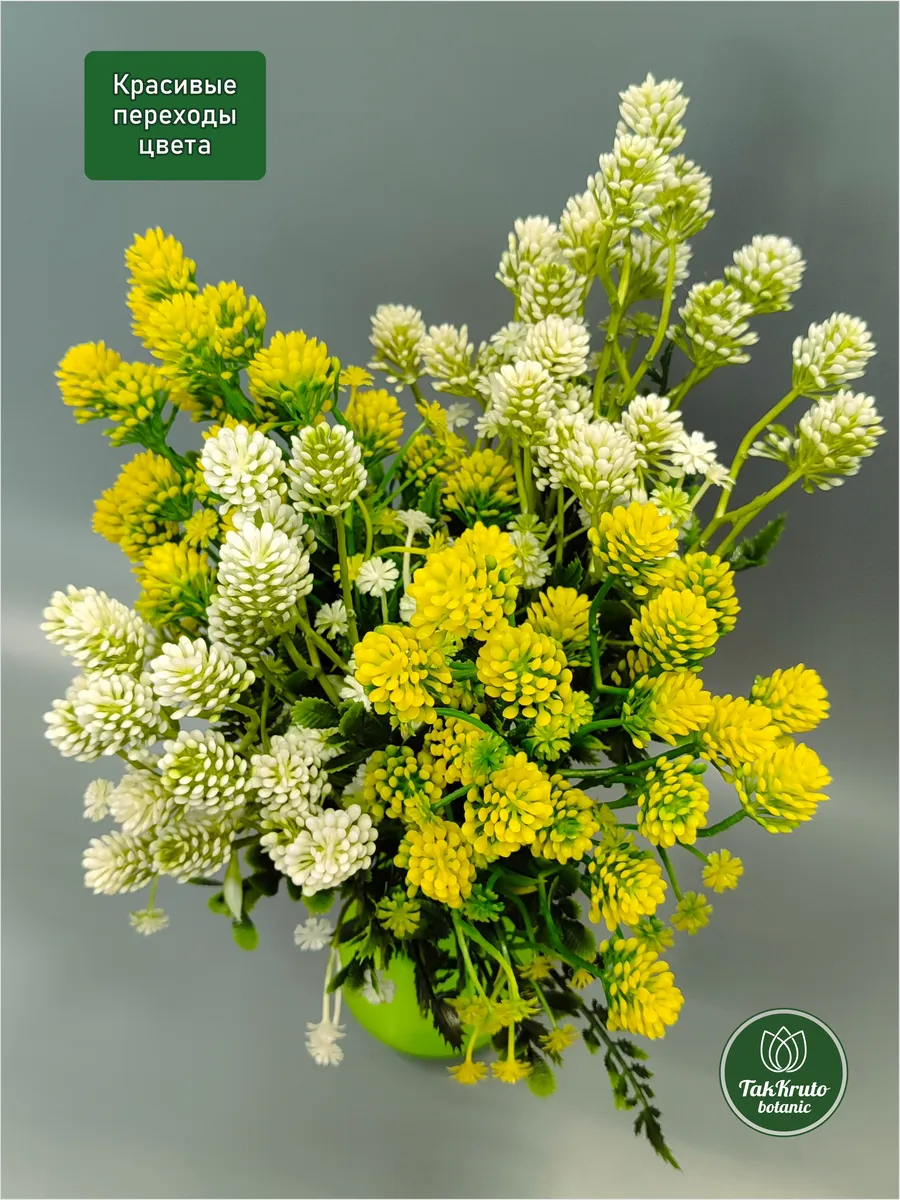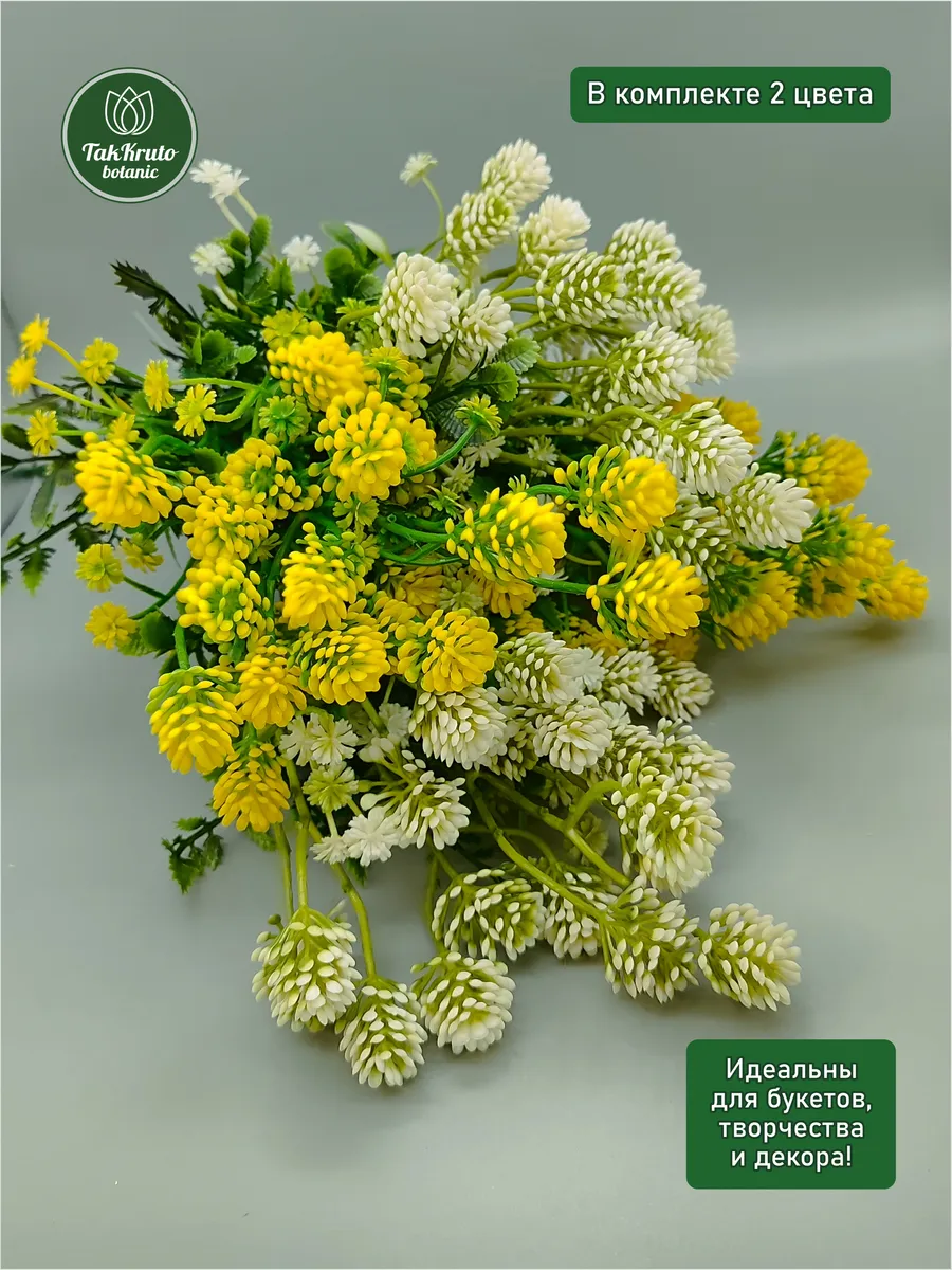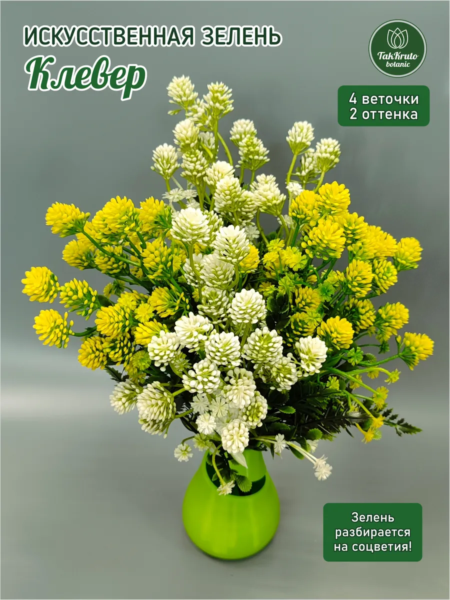 Искусственная зелень Клевер от бренда TakKruto Botanic выполнена из качественного пластика и выглядит крайне реалистично. Декоративные искусственные ветки подходят для любого интерьера, выглядят, как настоящие живые, эти искусственные растения не требуют полива и особого ухода, сохраняют достойный внешний вид в течение долгого времени. Красивые интерьерные веточки можно собирать в большие букеты, эти эстетичные изделия подойдут для кухни, зала, их размещают на подоконнике, тумбочке или полке. Искусственный клевер идеально подходит для флористических композиций, творческих букетов из мыла, фоамирана, лент, бумаги, сухоцветов, сладостей, конфет. Наши искусственные растения используются для декора свадьбы, дня рождения, для создания цветочных арок, настенных, настольных и напольных композиций для декора. Эти пластиковые веточки можно собирать в большие букеты, ставить их в вазы и кашпо, украшать свой дом, гостиную, веранду, спальню. В комплекте 4 веточки длиной 35 см, 2 бело-зелёные, 2 жёлто-зелёные.