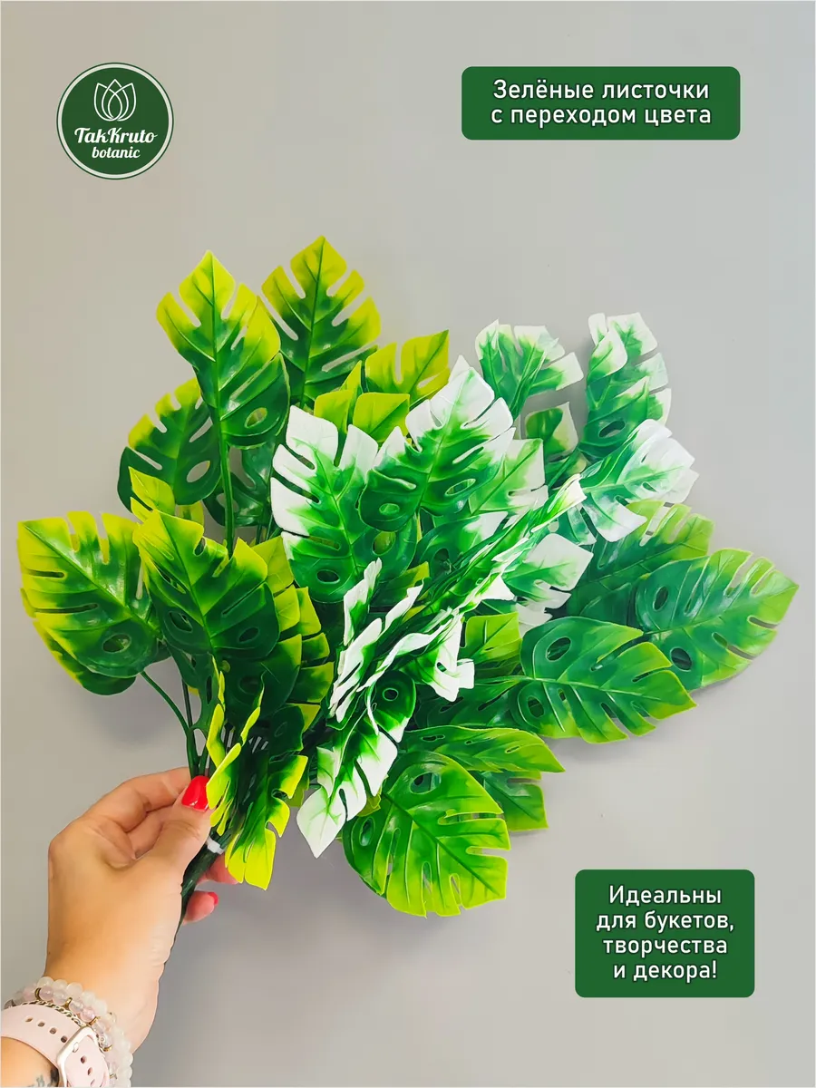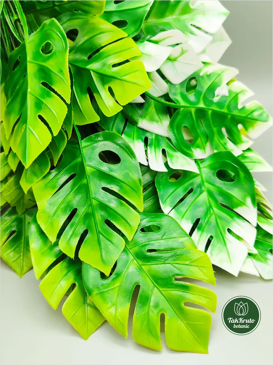 Искусственная зелень Монстера от бренда TakKruto Botanic выполнена из качественного пластика и выглядит крайне реалистично. Декоративные искусственные ветки подходят для любого интерьера, выглядят, как настоящие живые, эти искусственные растения не требуют полива и особого ухода, сохраняют достойный внешний вид в течение долгого времени. Красивые интерьерные веточки можно собирать в большие букеты, эти эстетичные изделия подойдут для кухни, зала, их размещают на подоконнике, тумбочке или полке. Искусственная зелень идеально подходит для флористических композиций, творческих букетов из мыла, фоамирана, лент, бумаги, сухоцветов, сладостей, конфет. Наши искусственные растения используются для декора свадьбы, дня рождения, для создания цветочных арок, настенных, настольных и напольных композиций для декора. Эти пластиковые веточки можно собирать в большие букеты, ставить их в вазы и кашпо, украшать свой дом, гостиную, веранду, спальню. В комплекте 3 веточки длиной 38 см, все веточки зелёные с переходом в разные цвета (как на фото).