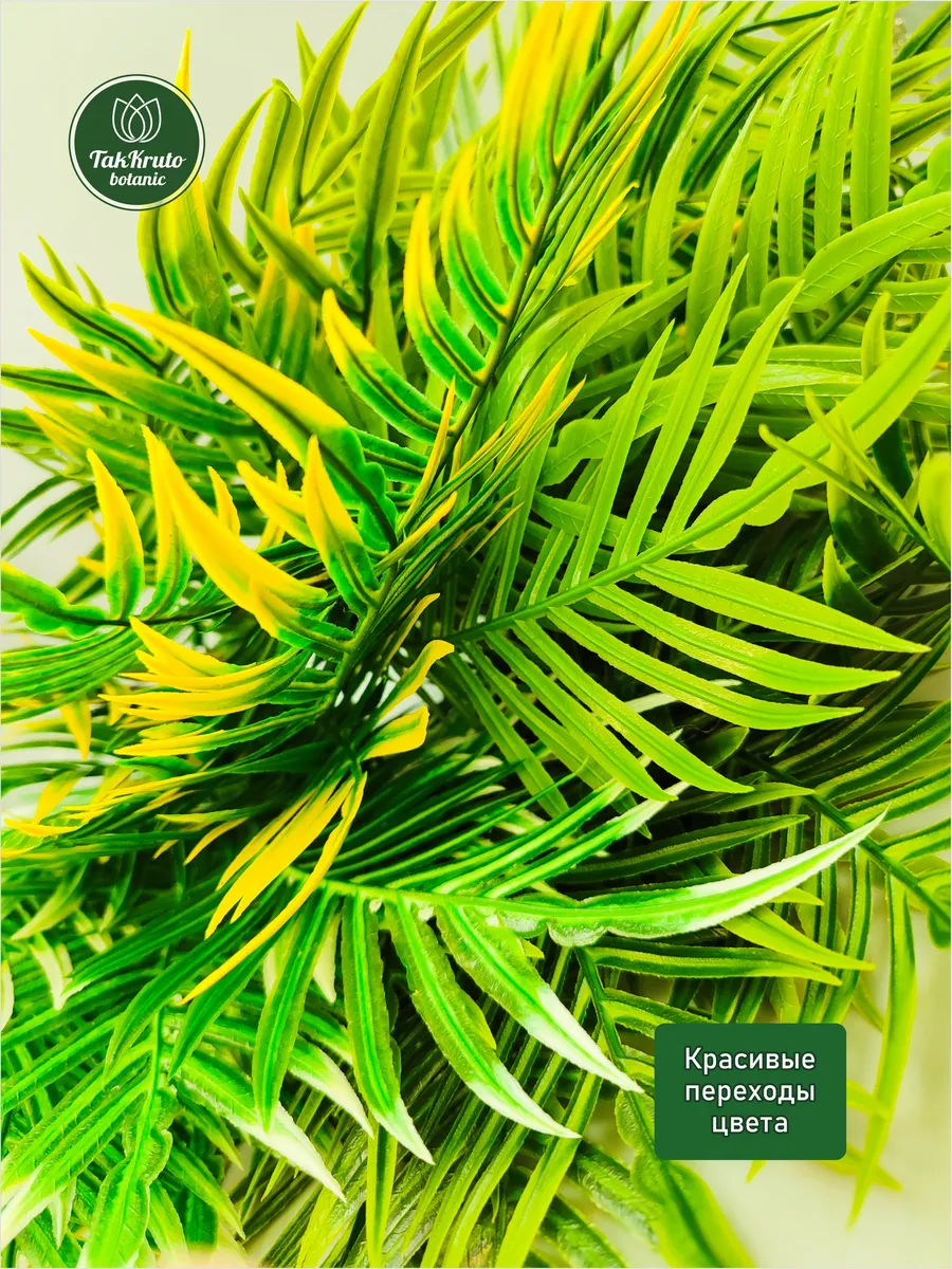 Искусственная зелень Папоротник №2 цвет-ассорти от бренда TakKruto Botanic выполнена из качественного пластика и выглядит крайне реалистично. Декоративные искусственные ветки подходят для любого интерьера, выглядят, как настоящие живые, эти искусственные растения не требуют полива и особого ухода, сохраняют достойный внешний вид в течение долгого времени. Красивые интерьерные веточки можно собирать в большие букеты, эти эстетичные изделия подойдут для кухни, зала, их размещают на подоконнике, тумбочке или полке. Искусственная зелень идеально подходит для флористических композиций, творческих букетов из мыла, фоамирана, лент, бумаги, сухоцветов, сладостей, конфет. Наши искусственные растения используются для декора свадьбы, дня рождения, для создания цветочных арок, настенных, настольных и напольных композиций для декора. Эти пластиковые веточки можно собирать в большие букеты, ставить их в вазы и кашпо, украшать свой дом, гостиную, веранду, спальню. В комплекте 5 веточек длиной 35 см, все веточки зелёные с переходом в разные цвета.