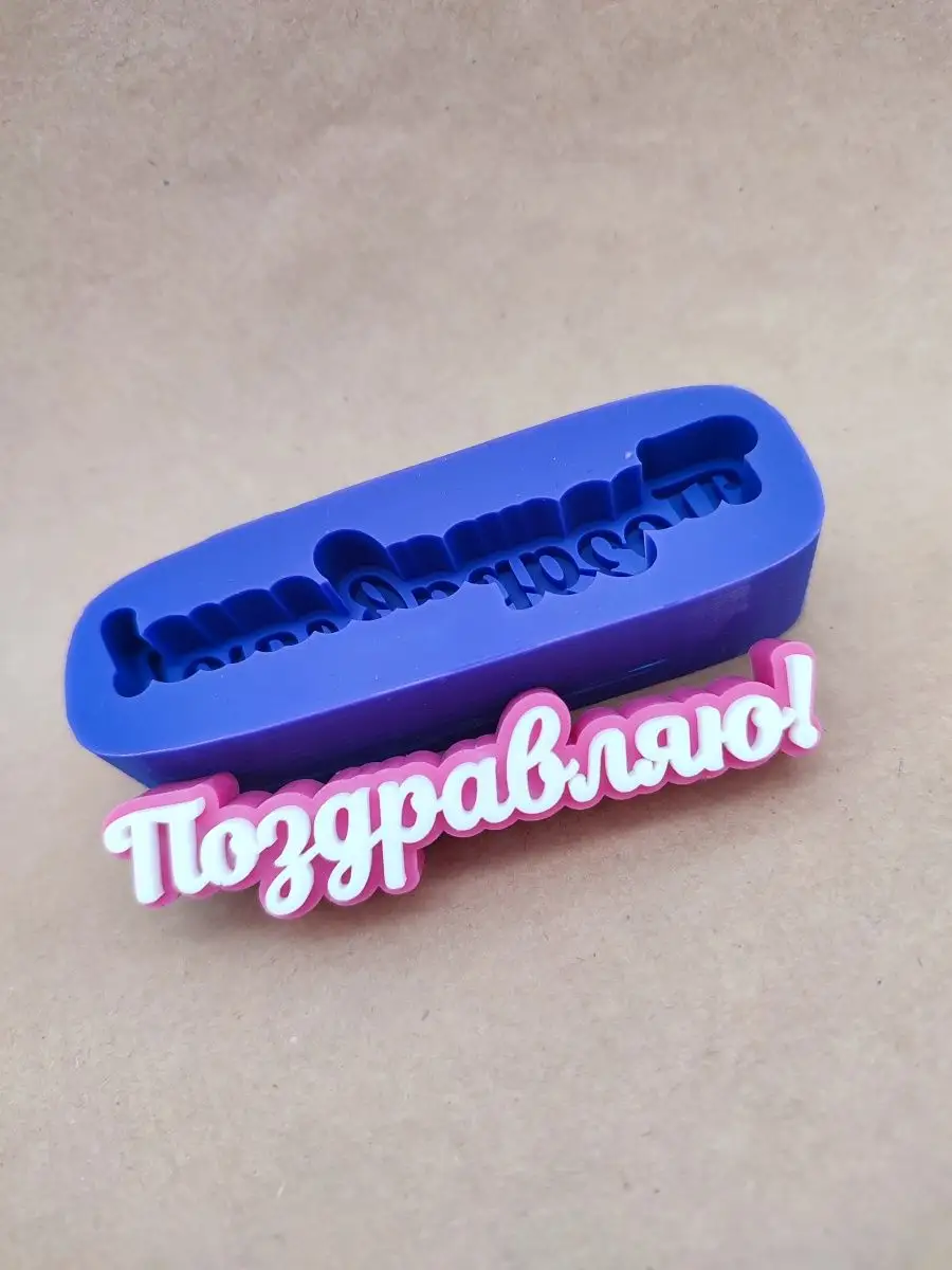 Силиконовая форма для мыла и свечей Топпер Поздравляю от бренда TakKruto (ТакКруто). Размеры готового мыла ~19*85*13 мм, вес в мыле: ~15 г. Мы производим формы из высококачественного гибкого силикона, устойчивого к высоким и низким температурам. С нашими силиконовыми молдами удобно работать даже новичку. Формы для мыла и свечей прекрасно переносят тысячи заливок и будут служить вам несколько лет. Также многие формы бренда ТакКруто подходят для заливки гипсом и эпоксидной смолой. С помощью силиконовых молдов вы можете создавать прекрасные handmade-изделия и подарки своими руками. На форме могут быть технологические разрезы для более удобного извлечения мыла. Внутри формы в редких случаях возможно наличие белого воскового налета, который не влияет на качество изделия. В комплект входит пакет для хранения и резинки для фиксации разрезов.