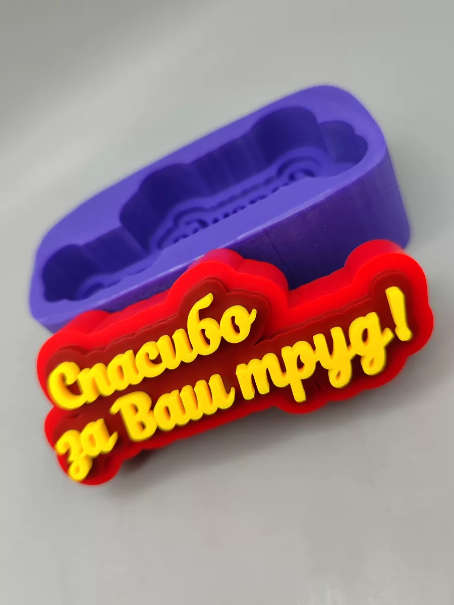 Силиконовая форма для мыла и свечей Топпер "Спасибо за ваш труд!" от бренда TakKruto (ТакКруто). Размеры готового мыла: длина ~85 мм, высота ~20 мм, вес в мыле: ~40 г. Мы производим формы из высококачественного гибкого силикона, устойчивого к высоким и низким температурам. С нашими силиконовыми молдами удобно работать даже новичку. Формы для мыла и свечей прекрасно переносят тысячи заливок и будут служить вам несколько лет. Также многие формы бренда ТакКруто подходят для заливки гипсом и эпоксидной смолой. С помощью силиконовых молдов вы можете создавать прекрасные handmade-изделия и подарки своими руками. На форме могут быть технологические разрезы для более удобного извлечения мыла. Внутри формы в редких случаях возможно наличие белого воскового налета, который не влияет на качество изделия. В комплект входит пакет для хранения.