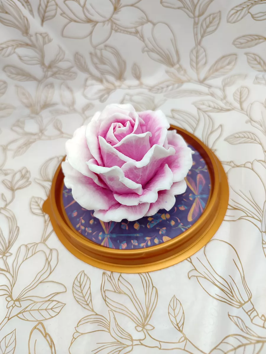 Мыло ручной работы Большая роза - прекрасный подарок на день Влюбленных, 8 марта или день Рождения! Роза из мыла упакована в красивый прозрачный купол с золотистым дном и картонной подложкой. Наше мыло имеет приятный и нежный цветочный аромат, вес мыльной розы ~85 гр (+-10 гр), высота ~6 см. Купол с мылом аккуратно упакован в картонную коробку с мягким наполнителем. Также наполнитель лежит внутри купола, вам необходимо открыть купол и удалить защитный наполнитель.