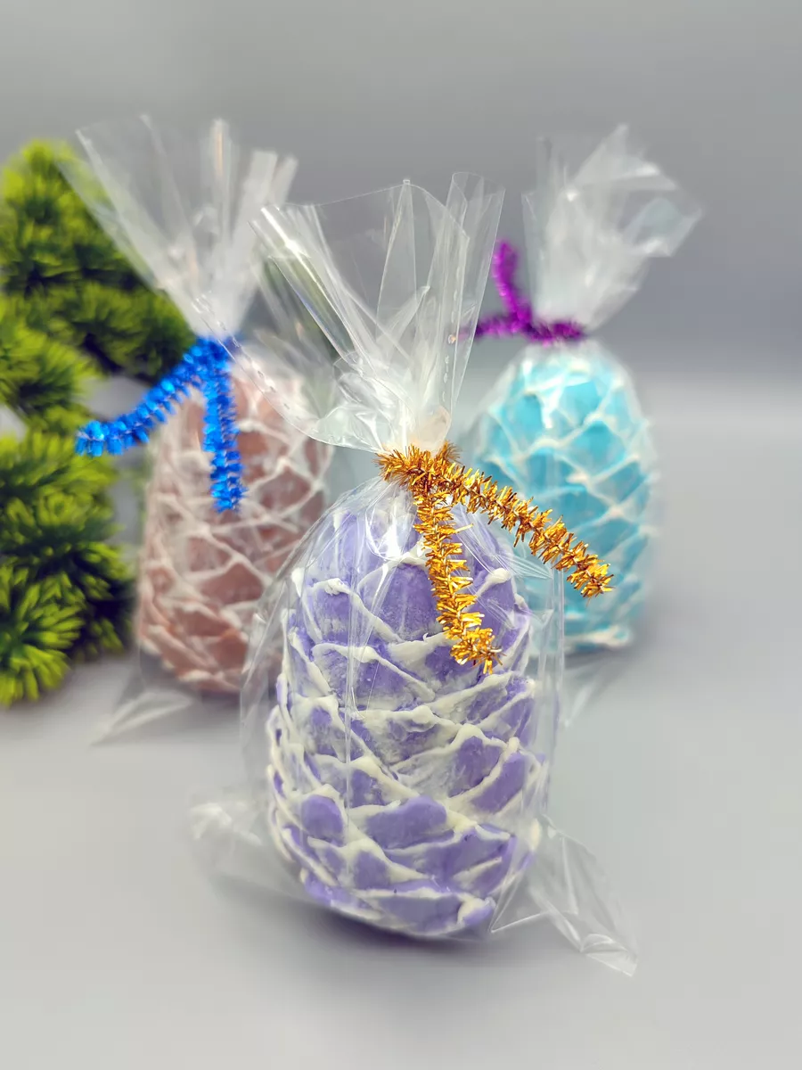 Новый 2025 год - самый долгожданный праздник! Мы предлагаем вам в качестве новогоднего подарка наше мыло ручной работы Кедровая шишка. В наборе 3 большие мыльные шишки весом 100 гр (+-10 гр), трёх разных цветов. Высота 75 мм, диаметр 55 мм. Ароматы у мыльных шишек новогодние, праздничные, с нотками хвои. Цвет может незначительно отличаться от цвета шишек из мыла на фотографии. Мыло ручной работы Кедровая шишка - прекрасный подарок на Новый 2025 год! Каждая шишка индивидуально упакована в прозрачный пакетик с блестящими завязками, таким образом вы получаете три готовых новогодних подарка.