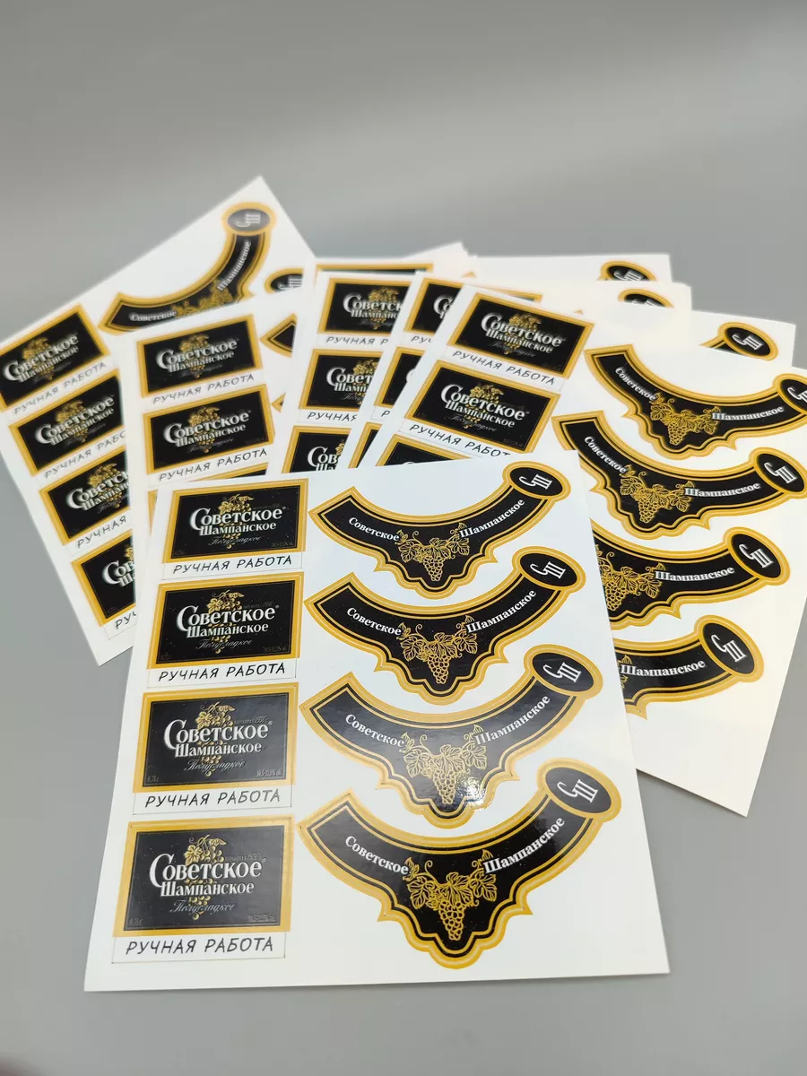 Наклейки НЕ ВЫРУБНЫЕ! Необходимо вырезать самостоятельно! Наклейки для мыла ручной работы в виде этикеток на Советское Шампанское от бренда TakKruto. В комплекте 10 листов размером 11*12 см, на каждом листе 4 пары. Общее количество наклеек для мыла - 40 пар. Прямоугольная наклейка 35х25 мм, полукруглая 65х35 мм. Идеально подходят для нашей формы Бутылочка №3, найти можно в поиске 171387417. Для лучшей фиксации на мыле рекомендуем дополнительно смазать края с помощью клея-карандаша. Вариант оформления вы можете посмотреть в фотографиях в карточке товара.