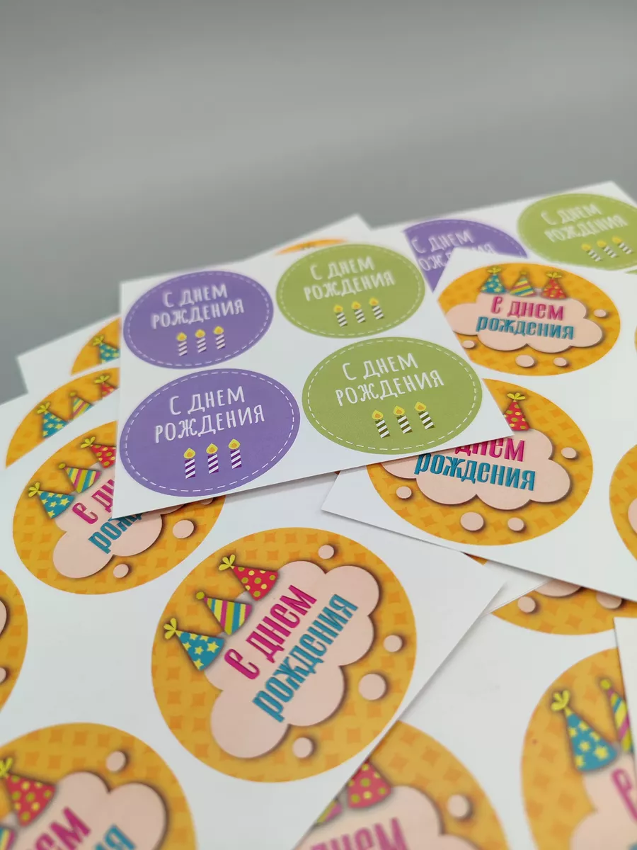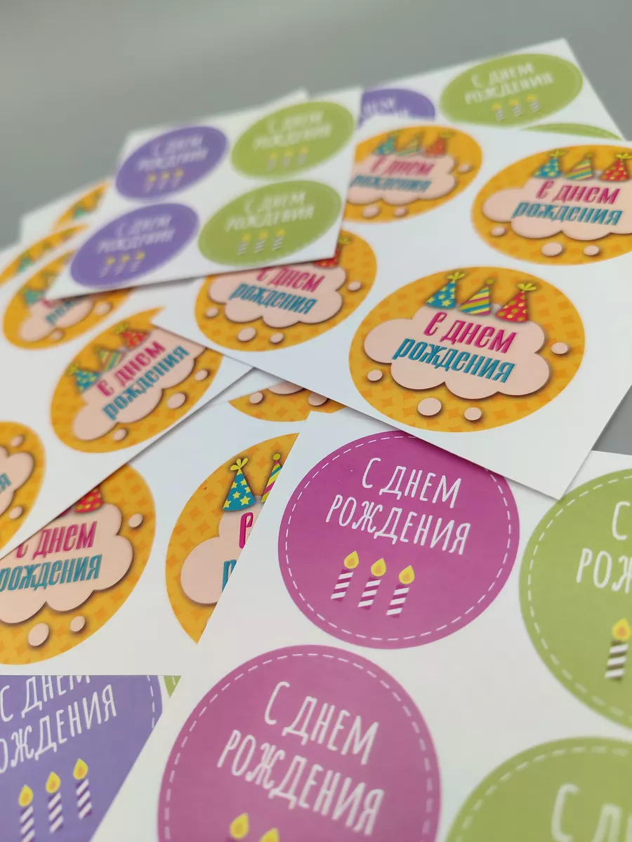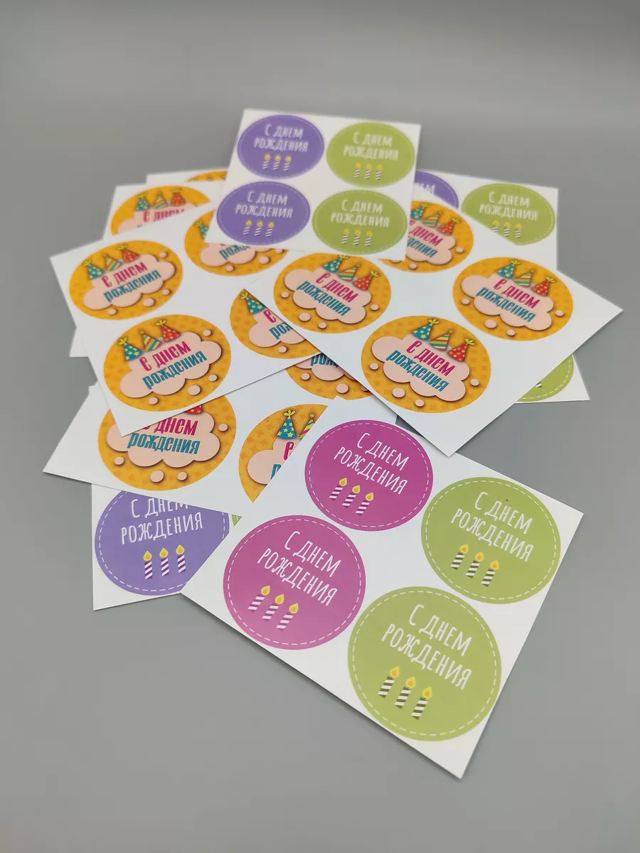 Декор для мыла ручной работы в виде этикеток "С днём Рождения!" от бренда TakKruto. В комплекте 10 листов размером 11*12 см, на каждом листе 4 шт, диаметр 40 и 45 мм. Общее количество наклеек - 40 шт. Наклейки не вырубные! Их необходимо вырезать самостоятельно.