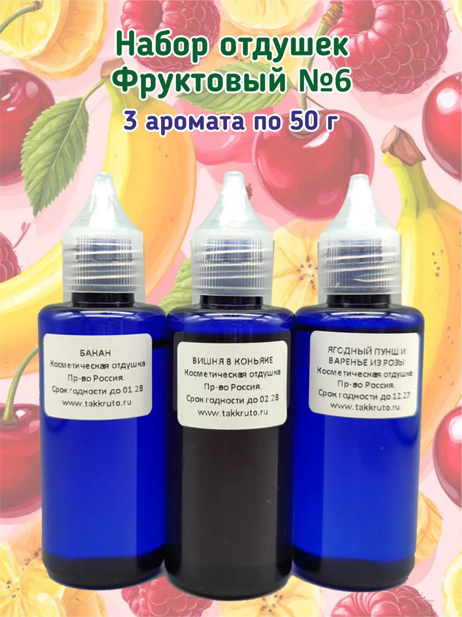 Набор из 3 косметических отдушек по 50 грамм. Ароматы: 1. Банан. Производство Россия. 2. Вишня в коньяке. Производство Россия. 3. Ягодный пунш и варенье из розы. Производство Россия.