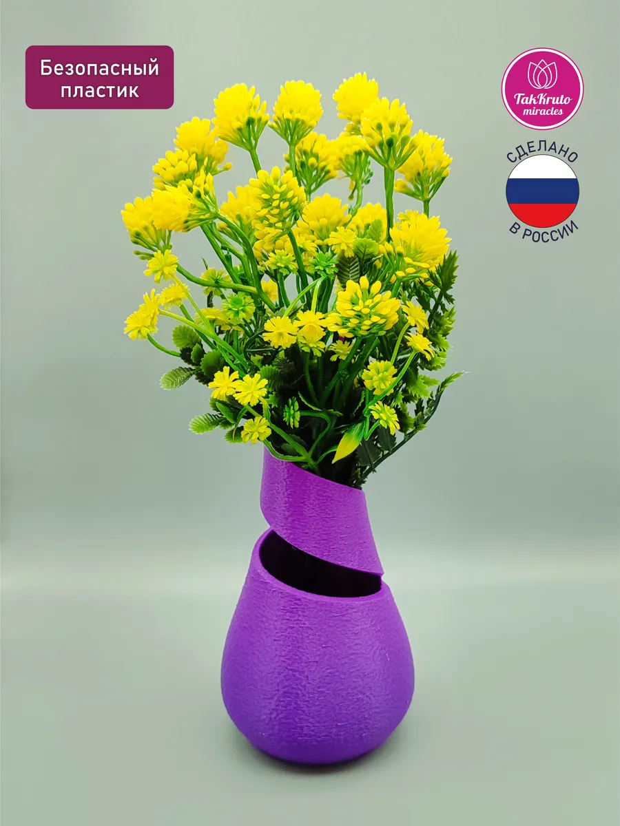 Интерьерная ваза для цветов от TakKruto Miracles (ТакКруто Мираклс)– стильное и практичное украшение и декор для дома. Элегантная пластиковая ваза для цветов сочетает в себе современный дизайн и функциональность. Эта асимметричная ваза не только эффектно дополняет декор вашего дома, но и отлично держит воду, сохраняя свежесть букетов из живых цветов. Идеальный вариант для дома, офиса, дачи, веранды, террасы или праздничного стола – ваза устойчива, легка и проста в уходе. Доступна в разных цветах, чтобы подчеркнуть индивидуальность вашего интерьера. Практичная, красивая и долговечная – эта пластиковая ваза для цветов станет идеальным выбором для ценителей стиля и удобства! Безопасный пластик. Высота вазы -19 см.