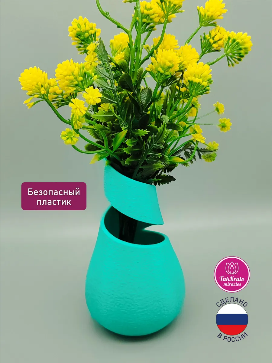 Интерьерная ваза для цветов от TakKruto Miracles (ТакКруто Мираклс)– стильное и практичное украшение и декор для дома. Элегантная пластиковая ваза для цветов сочетает в себе современный дизайн и функциональность. Эта асимметричная ваза не только эффектно дополняет декор вашего дома, но и отлично держит воду, сохраняя свежесть букетов из живых цветов. Идеальный вариант для дома, офиса, дачи, веранды, террасы или праздничного стола – ваза устойчива, легка и проста в уходе. Доступна в разных цветах, чтобы подчеркнуть индивидуальность вашего интерьера. Практичная, красивая и долговечная – эта пластиковая ваза для цветов станет идеальным выбором для ценителей стиля и удобства! Безопасный пластик. Высота вазы -19 см.