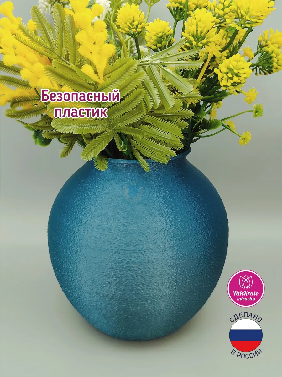Ваза Сфера желаний – изысканное украшение интерьера и стильная большая ваза для цветов Плюсы вазы: - Элегантный дизайн – фактурная поверхность вазы и форма сферы создают гармонию в любом пространстве. - Универсальность – подходит для живых и искусственных цветов, а также как самостоятельный декор. - Высокое качество – прочный и безопасный пластик, устойчивое дно, приятная на ощупь поверхность. - Вместительность – диаметр и высота вазы 15 см, что позволяет создавать роскошные цветочные композиции. Объём вазы - 1,5 литра. - Стильное решение – лаконичный дизайн и цвет сочетаются с любым интерьером. Функциональность: - Идеальна для букетов и веточек. - Может использоваться как элемент декора – например, с декоративными шарами, ветками или светодиодной гирляндой. - Подходит для гостиной, спальни, офиса и праздничного оформления. Красота и атмосфера: Ваза "Сфера желаний" притягивает взгляды и добавляет интерьеру утонченности. Её форма символизирует гармонию и завершенность, а игра света на поверхности создает уютную атмосферу. Подарите себе или близким частицу эстетики и вдохновения!